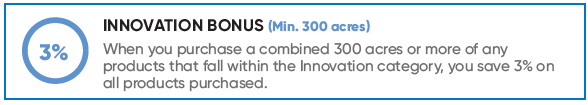 When you purchase a combined 300 acres or more of any products that fall within the Innovation category, you save 3% on all products purchased.